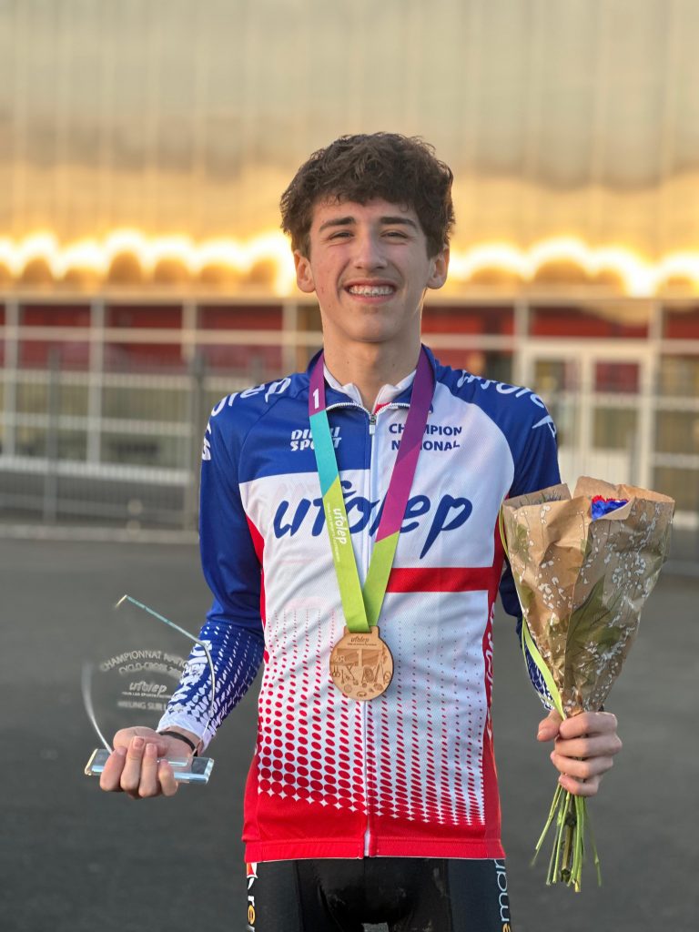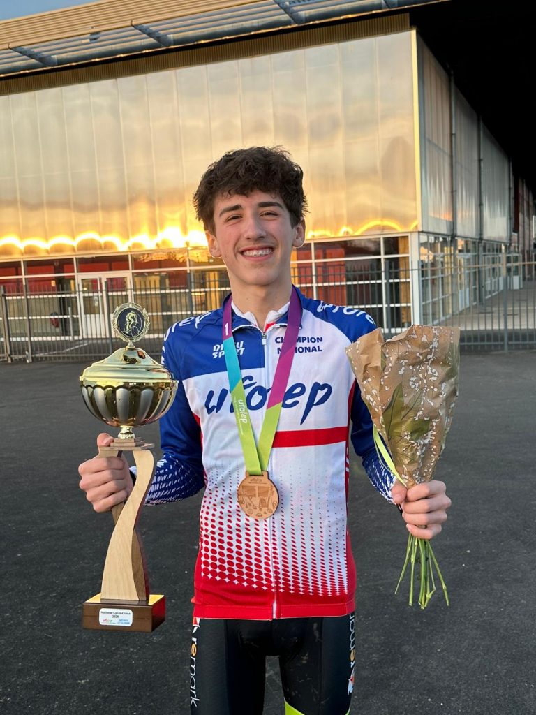 Après avoir échappé au titre au sprint l’an dernier, Marius, cadet 1ère année, était particulièrement attendu. Sa détermination et la régularité de sa saison, déjà remarquable pour une première année dans la catégorie, se concluent de la plus belle des manières avec ce titre national individuel